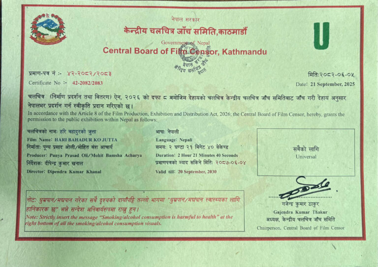 फूलपातीमा प्रदर्शन हुने फिल्म ‘हरिबहादुरको जुत्ता’सेन्सर पास भएको छ । केन्द्रिय चलचित्र जांच समिति (सेन्सर बोर्ड) ले चलचित्रलाई युनिभर्सल सर्टिफिकेट दिएको छ । अव यो चलचित्र सवै उमेर समुहका दर्शकले हेर्न पाउनेछन्।