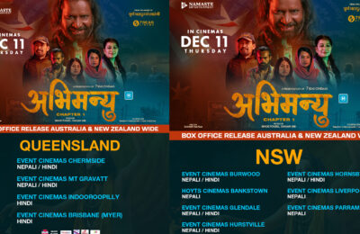 नेपालमा प्रदर्शनरत फिल्म ‘अभिमन्यु : च्याप्टर–१’ले अष्ट्रेलिया र न्युजिल्यान्डमा ऐतिहासिक शो पाएको छ । डिसेम्बर ११ बाट रिलिज हुन लागेको यो चलचित्रले अस्ट्रेलिया र न्युजिल्यान्डमा